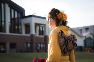 成人式を迎えるお嬢様、実はスキーの選手なのです!